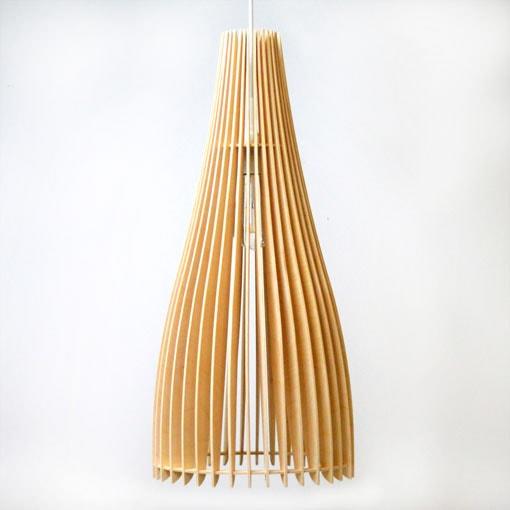 Moderno dizajnersko svetilo narejeno iz lesa.